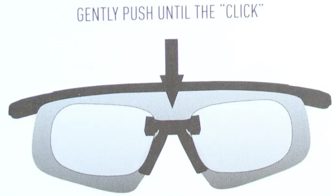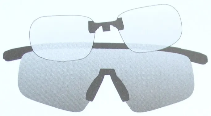 | ACHTUNG !!! | - der Verglasungsclip (Muster) dient zur visuellen Orientierung und kann mit Gläsern in individueller Sehstärke gefertigt werden (Optional). siehe "Beschreibung Clip" |